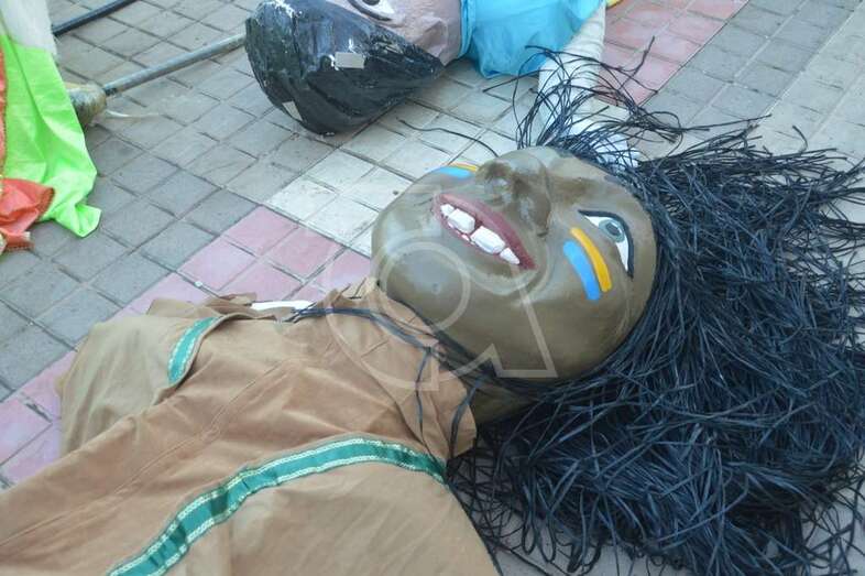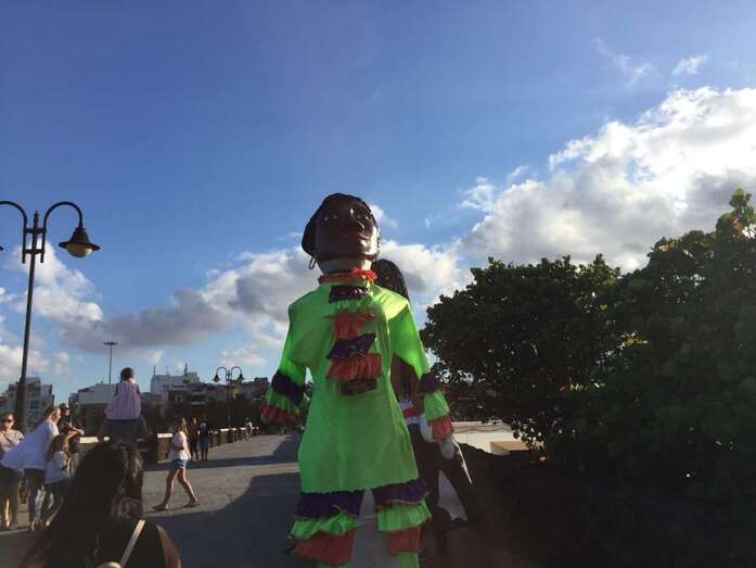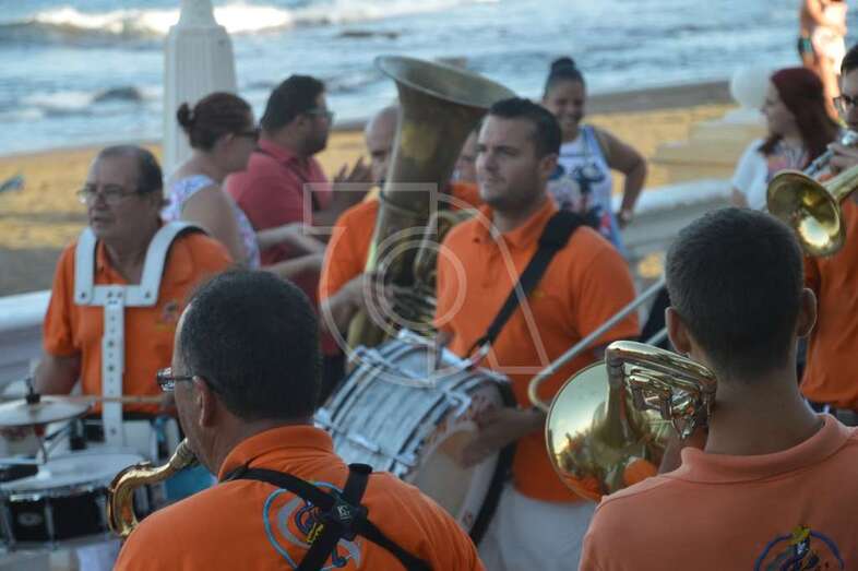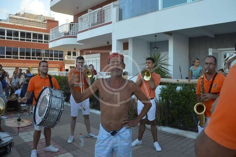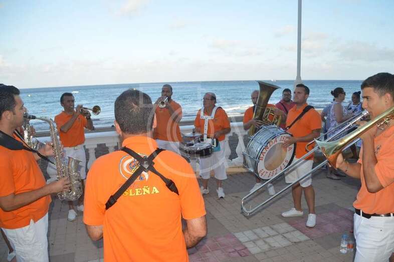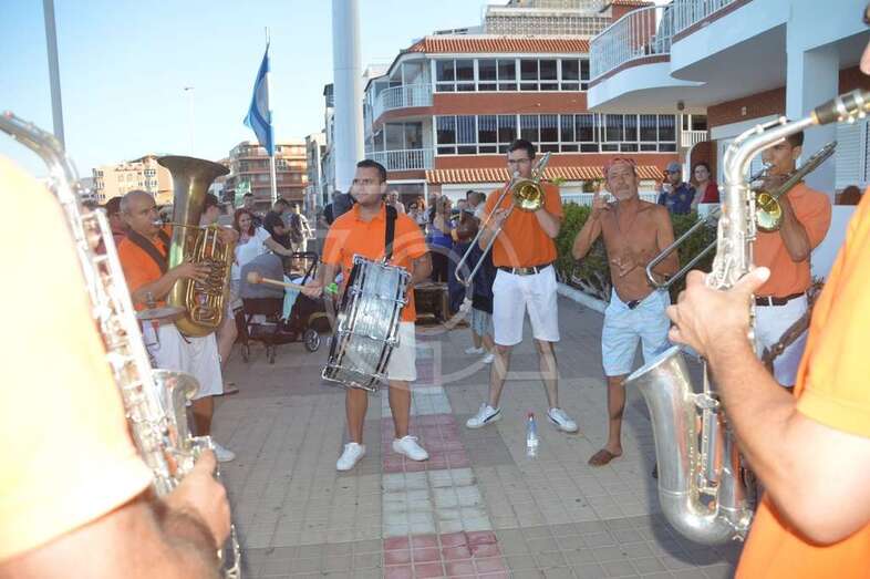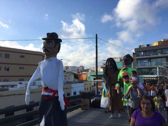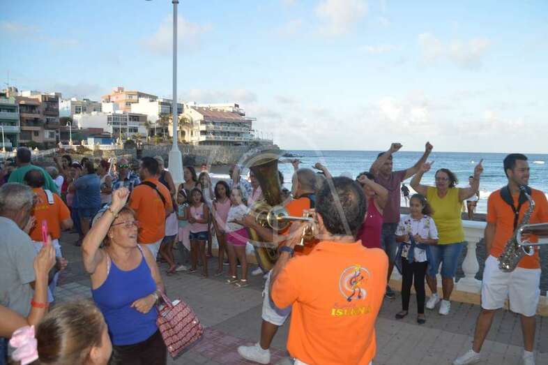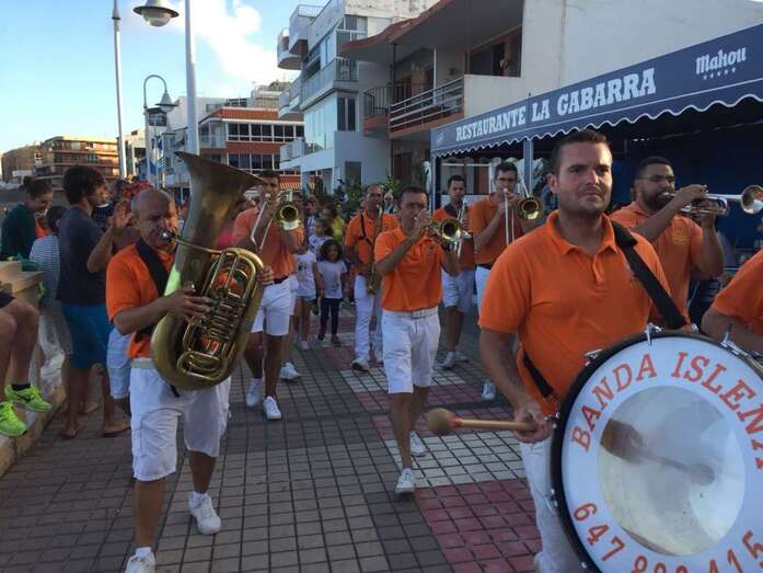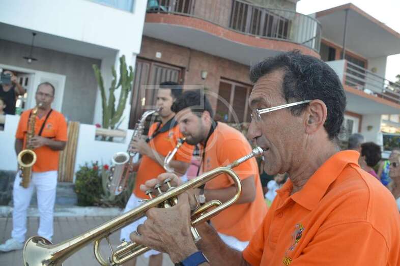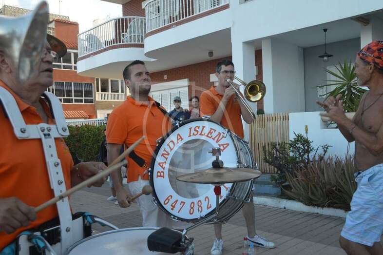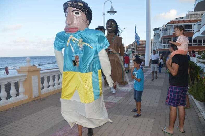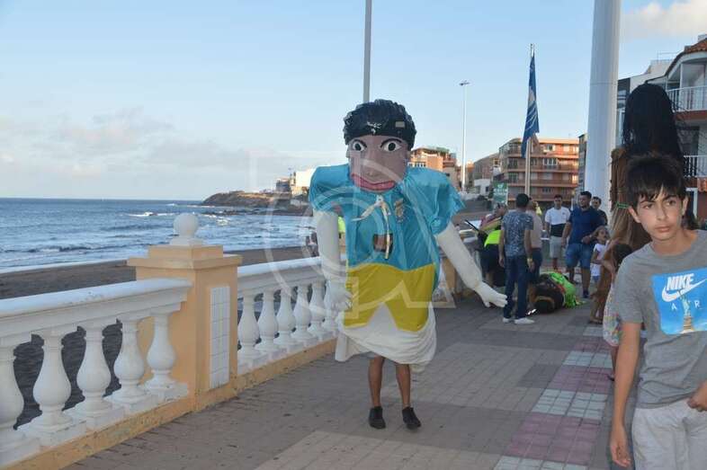 Cinco papagüevos al ritmo de la música pachanguera de la Banda Isleña animaron esta tarde el comienzo de las fiestas de Melenara con un pasacalles por todos los enclaves de esta zona costera de Telde.
