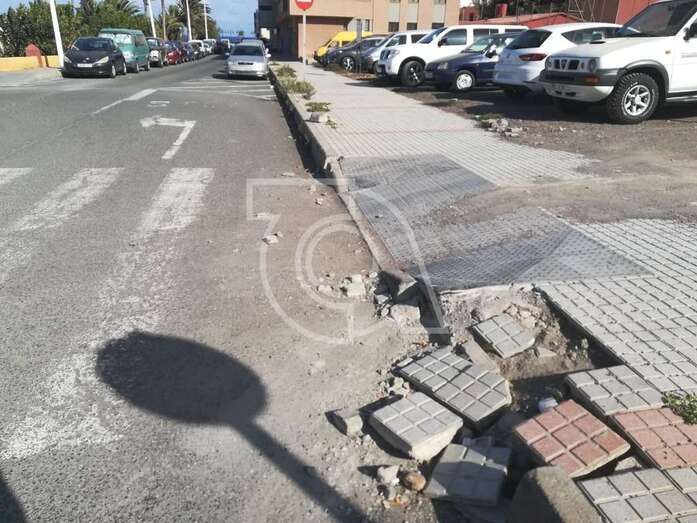 Las aceras del núcleo costero de Clavellinas presentan en varias calles un mal estado debido al paso de vehículos por ellas o por la caída de bolardos. Los vecinos reclaman su arreglo.
