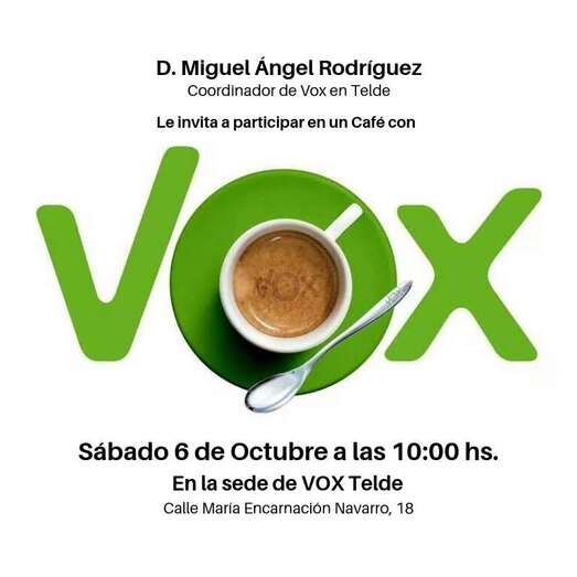 Vox, partido de reciente implantación en Telde con el exconsejero insular y exalcalde Francisco Santana como cabeza visible, compartió esta mañana en su nueva sede en esta ciudad un café con un grupo de militantes y simpatizantes.