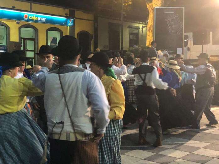 Los grupos folclóricos teldenses El Salitre del Faycán y Erasmo Hernández participaron el pasado sábado, junto a varias formaciones de diferentes municipios de la isla, en la Fiesta de la Manzana que se celebró en la plaza pública de Valleseco.