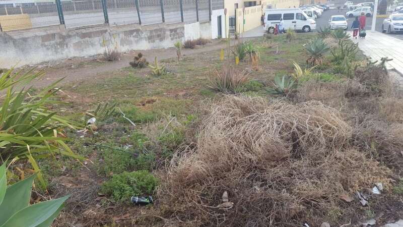 En la comunidad educativa del CEIP La Garita vienen años denunciando lo descuidados y abandonados que están los jardines que rodean el centro. Una zona que no recibe la atención necesaria y que se ha convertido en un foco de moscas y malos olores ya que hay quien los utiliza como espacio para sacar las mascotas a hacer sus necesidades.