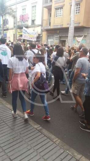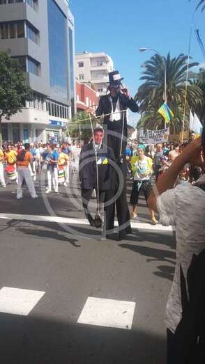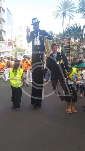 Miembros de Podemos y el ciudadano teldense José Luis Florido en la protesta que tuvo lugar en la capital grancanaria (Foto TA)