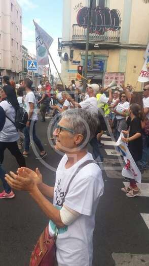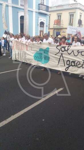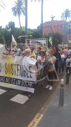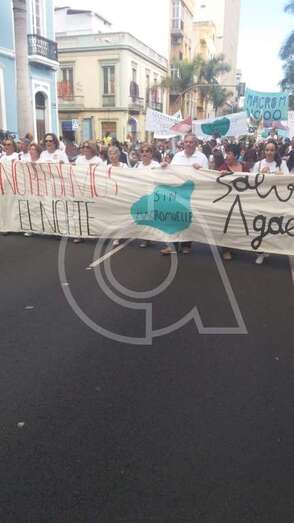 Decenas de vecinos de Telde secundaron este sábado la protesta que tuvo lugar al mediodía en la capital grancanaria en contra de la construcción de un macromuelle en el puerto de Agaete.