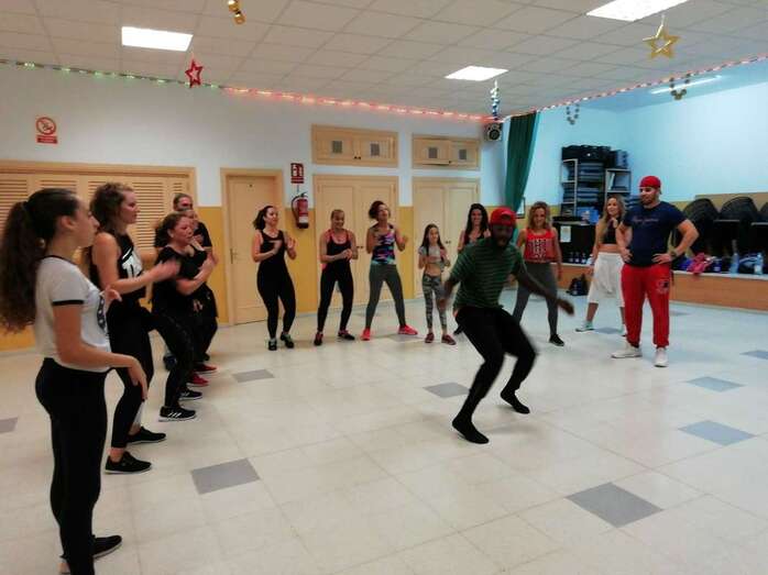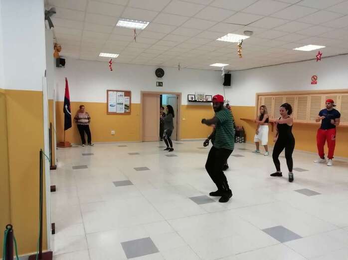 La Garita bailó este lunes al ritmo de afrodance y kizomba en la clase magistral impartida por el bailarín holandés Zico Gomes en la sede del colectivo vecinal Punto y Seguido.