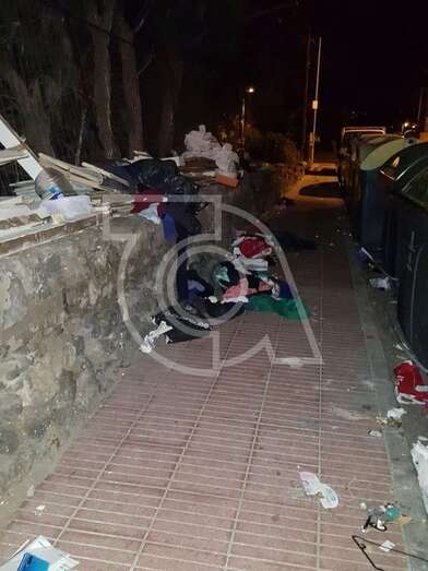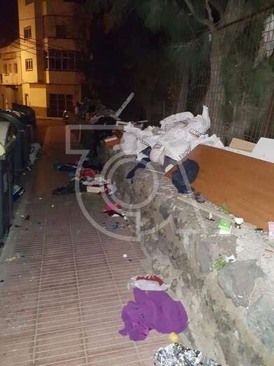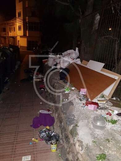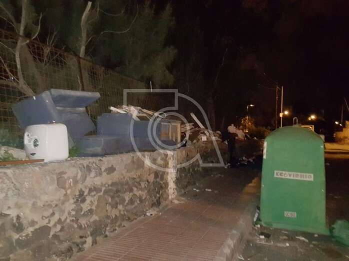 El aspecto que ofrece esta noche el entorno de Barrio Ponce, cercano a Las Remudas, no puede ser más desolador por la falta de civismo. Enseres como sillones o aparatos eléctricos como un termo pueblan la vía de este núcleo de población.
