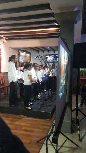 Momento de la actuación del grupo coral infantil que dirige Gustavo Sarmiento (Foto TA)