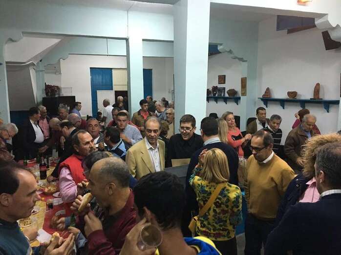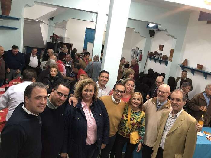 Asier Antona (d), de charla con un grupo de militantes del PP de Telde en el encuentro navideño (Foto TA)