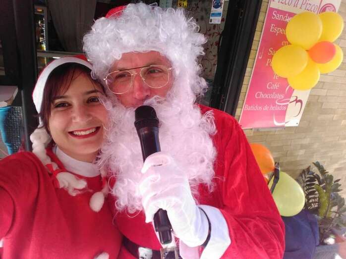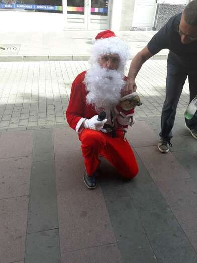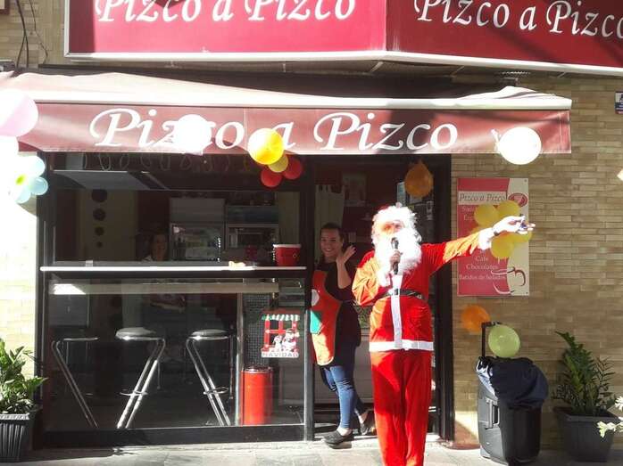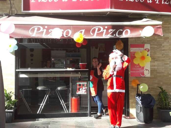 Papá Noel, con trabajadores y clientes del piscolabis Pizco a Pizco (Foto TA)