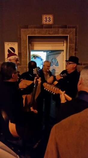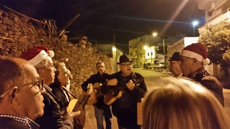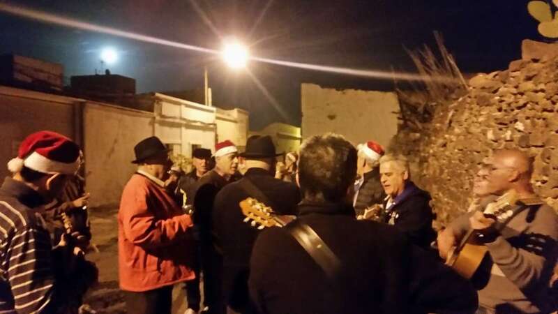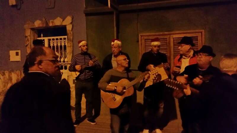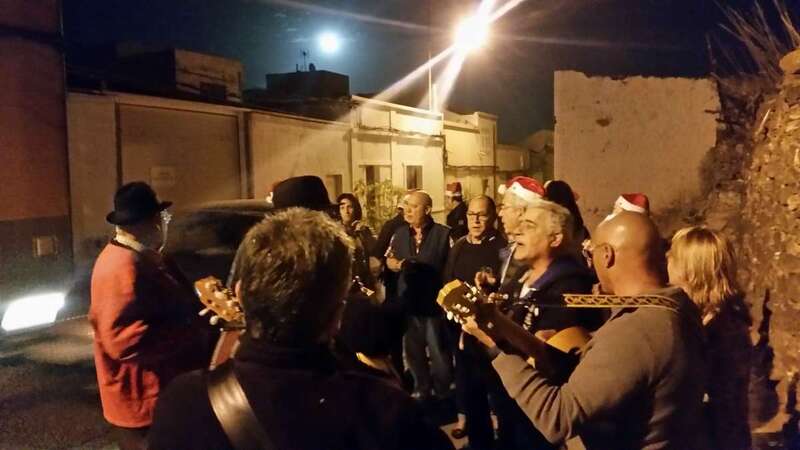 La Parranda Se me fue el baifo animó esta noche el barrio de San Antonio con un recorrido callejero cantando villancicos y temas navideños con el acompañamiento de un grupo de vecinos.