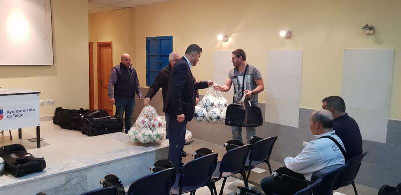 La Concejalía de Deportes de Telde que coordina Diego Ojeda, procedió esta semana, en el Aula de Formación Deportiva, a la entrega de material a los clubes participantes en el 27º Torneo de Fútbol Base Ciudad de Telde.