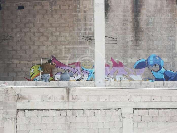 Un grupo de grafiteros han penetrado este domingo en el interior del inacabado Palacio de la Cultura de Telde y se han dedicado a pintar una de sus paredes con sus creaciones. El trabajo de estos jóvenes ha sido visible desde la calle. Se ha dado aviso a la Policía Local.