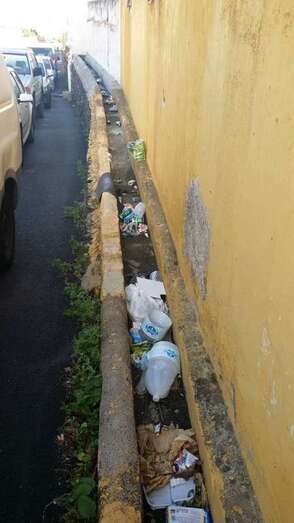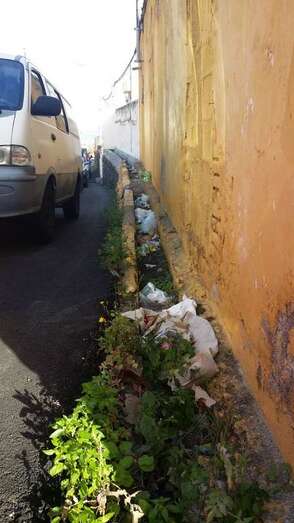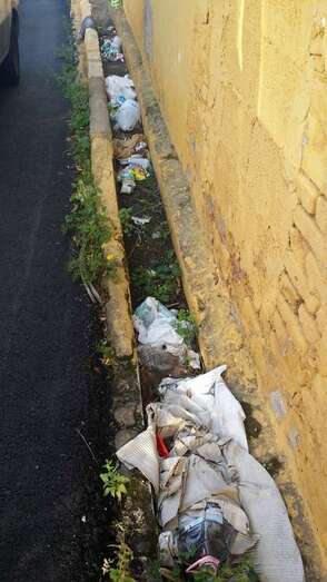La basura obstruye el cauce de la acequia de la calle de La Rocha (Foto TA)