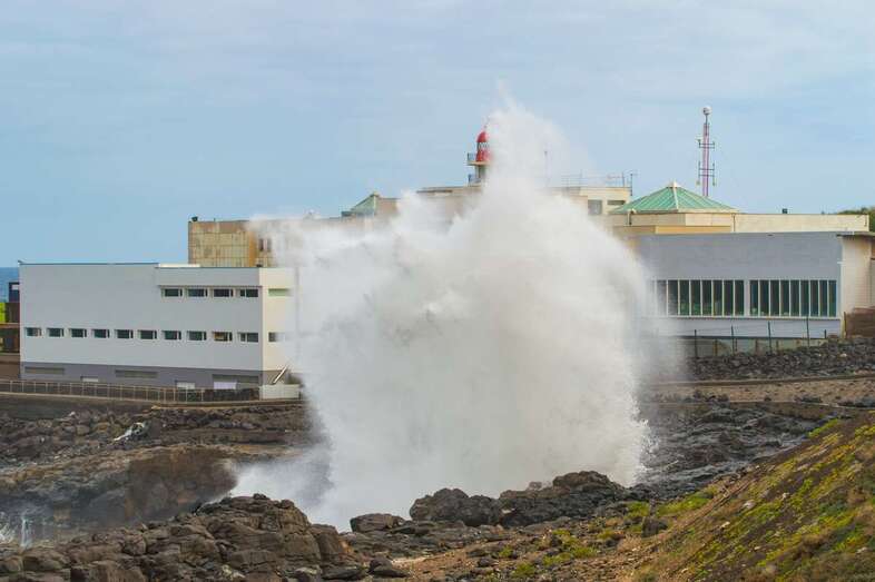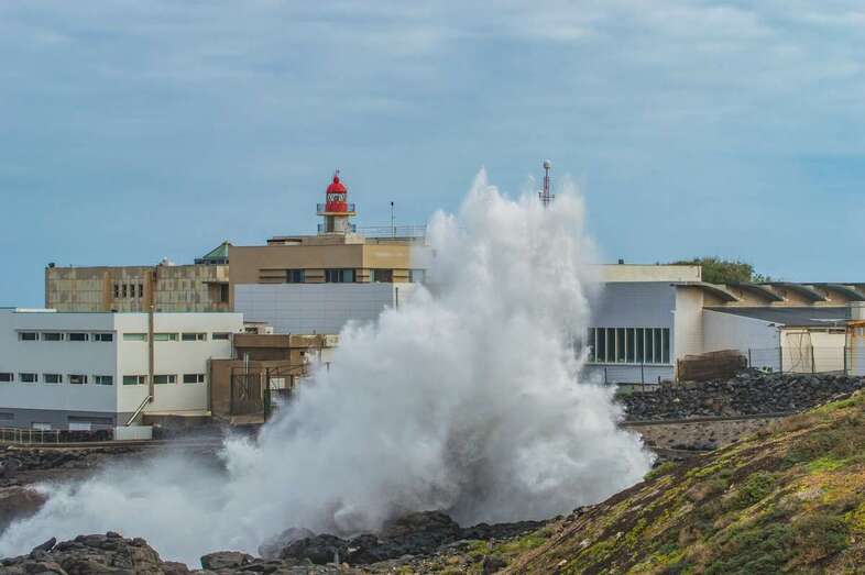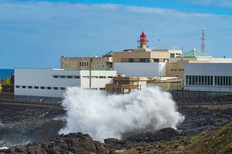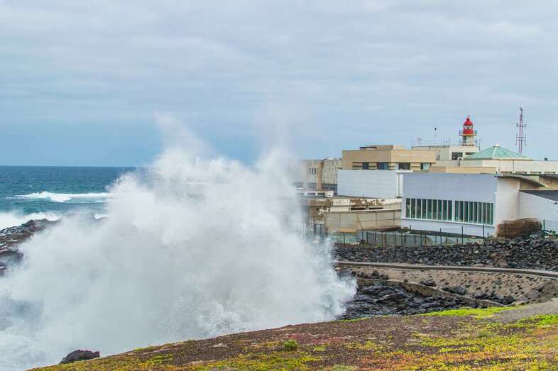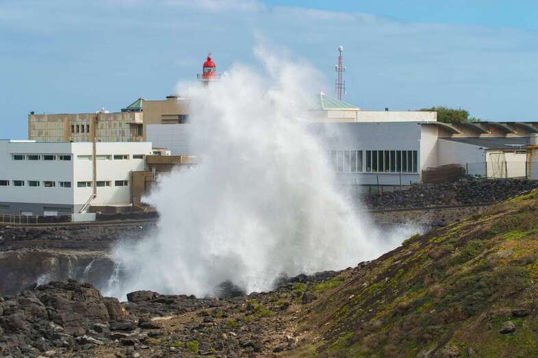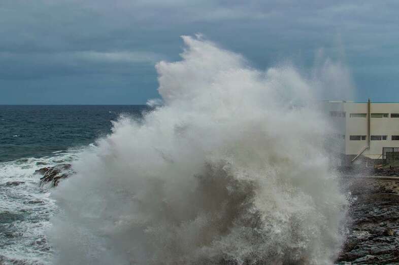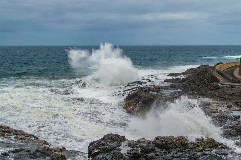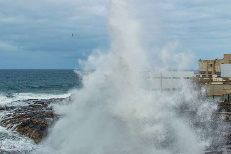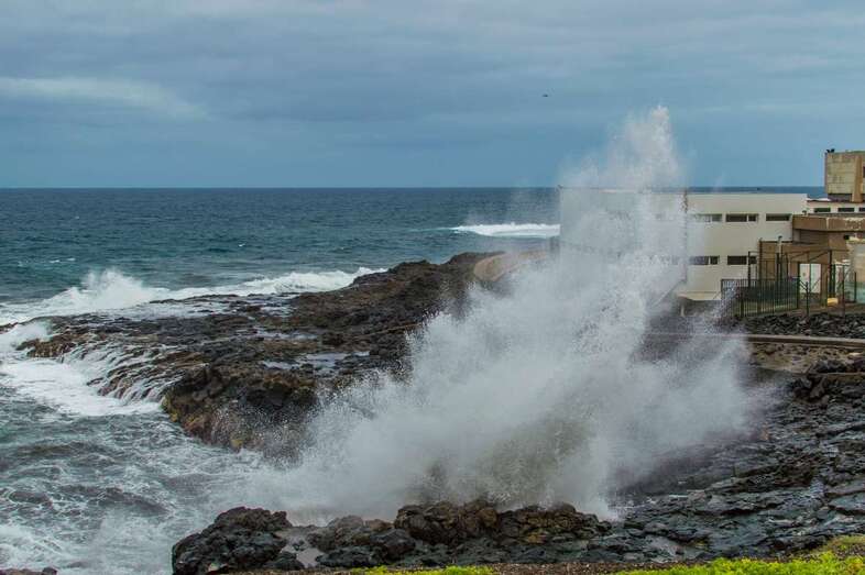 La fuerza del viento y las olas ofrecieron este fin de semana un espectáculo de montañas de agua en la zona costera del Castellano, en Taliarte-Telde, que fue captado por el colaborador Antonio Rico.