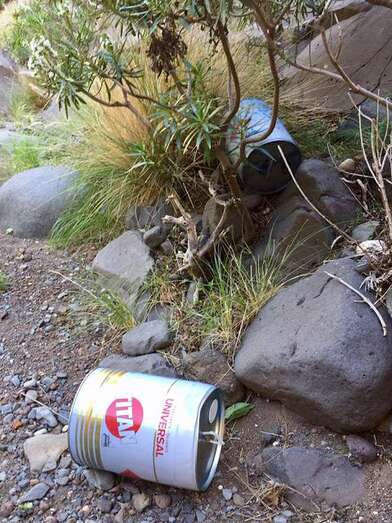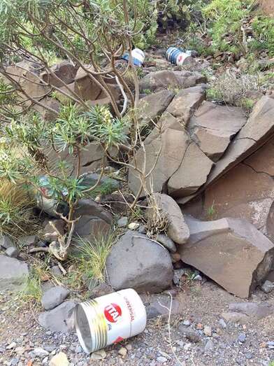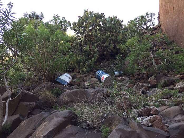 IUC denuncia el vertido de latas de pinturas en el cauce medio del Barranco del Draguillo, límite natural de Telde con Ingenio, así como la existencia de un pozo abierto de 100 metros de profundiad que califica de "peligroso" para senderistas.