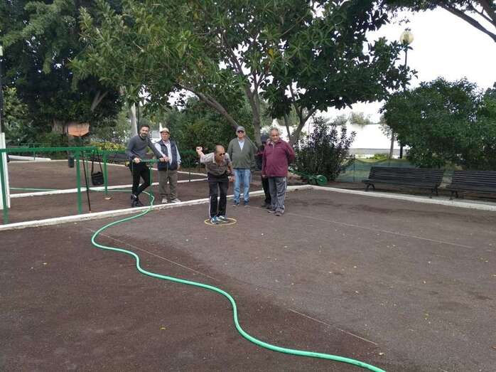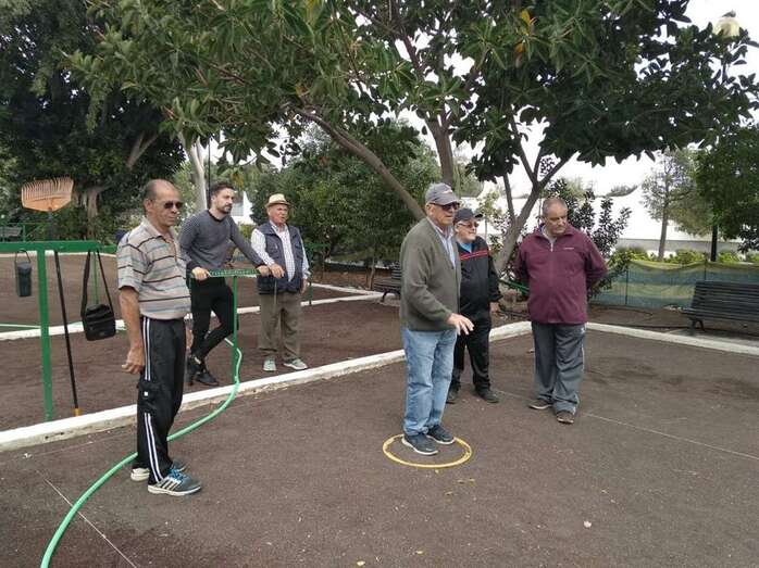 El concejal y candidato a la Alcaldía de Telde por Ciuca, Juan Antonio Peña, compartió este viernes un rato con miembros del Club de Petanca y Bola Canaria Avestruz, en el parque urbano de San Juan.