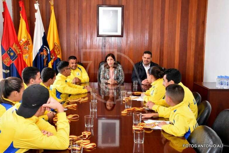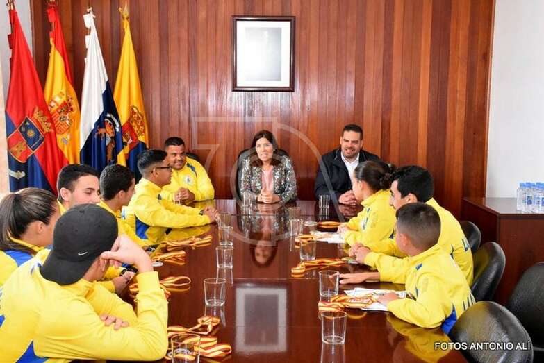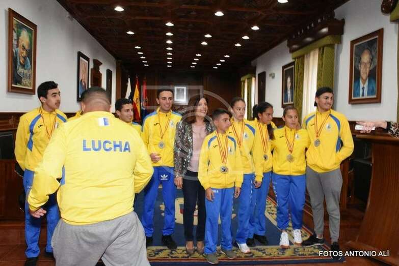 La alcaldesa de Telde, Carmen Hernández, recibió esta tarde en las Casas Consistoriales a los jóvenes componentes del Club TAZ Jinámar, entre los que se encuentran campeones de Canarias y de España de Grappling.