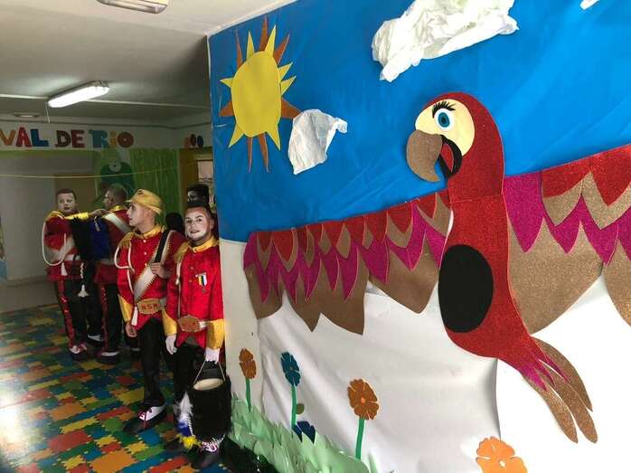 Las murgas teldenses Los nietos de SaryMánchez y Las Golisnionas alegraron este viernes el día de carnaval en el CEIP Padre Collado (Lomo Magullo). La primera estuvo también en el Colegio Poeta Fernando González (San Juan).