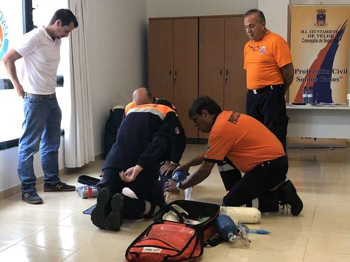 Voluntarios de Protección Civil se formaron este sábado en cuestiones de soporte vital básico y uso del desfibrilador semiautomático externo en un curso organizado por la Dirección General de Seguridad y Emergencias del Gobierno de Canarias.