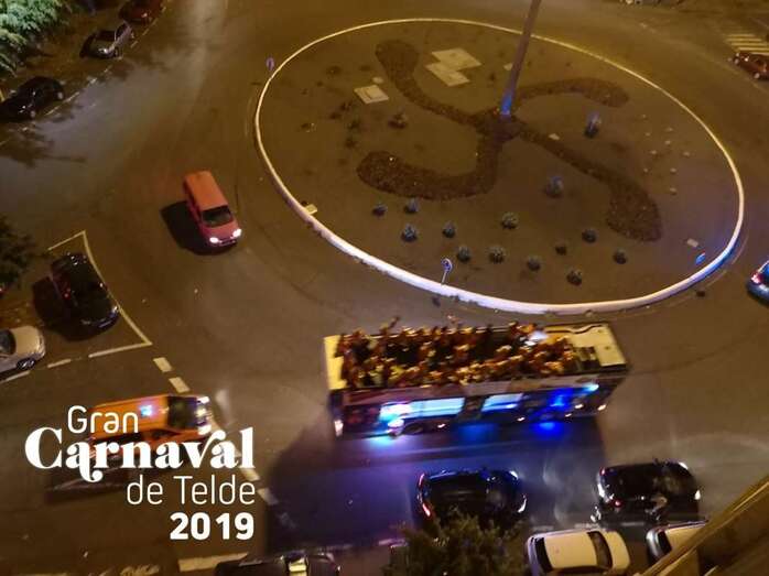 La carroza anunciadora del carnaval de Telde ya recorre las calles de la ciudad y sus barrios. Este martes por la tarde-noche lo hizo por el Distrito de Jinámar y en los próximos días por el resto del municipio.