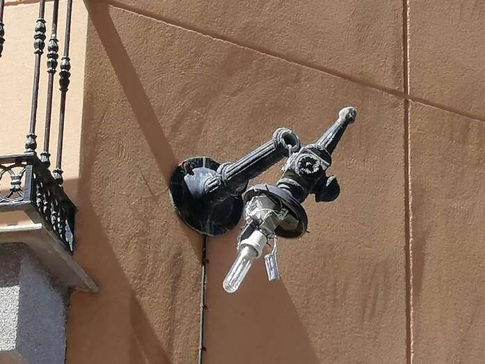 Estado en que quedó la farola (Foto TA)