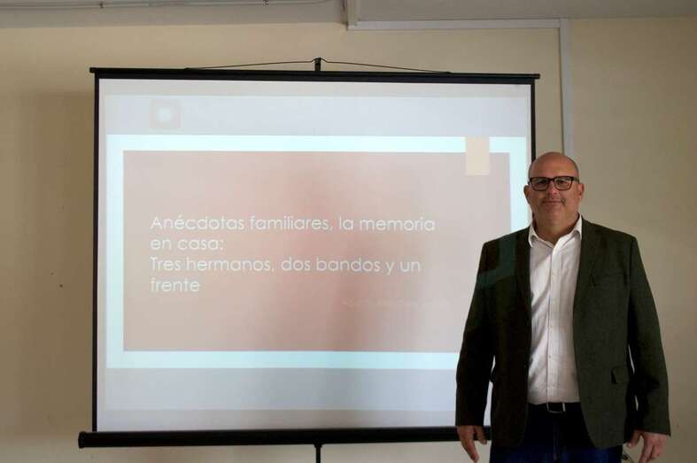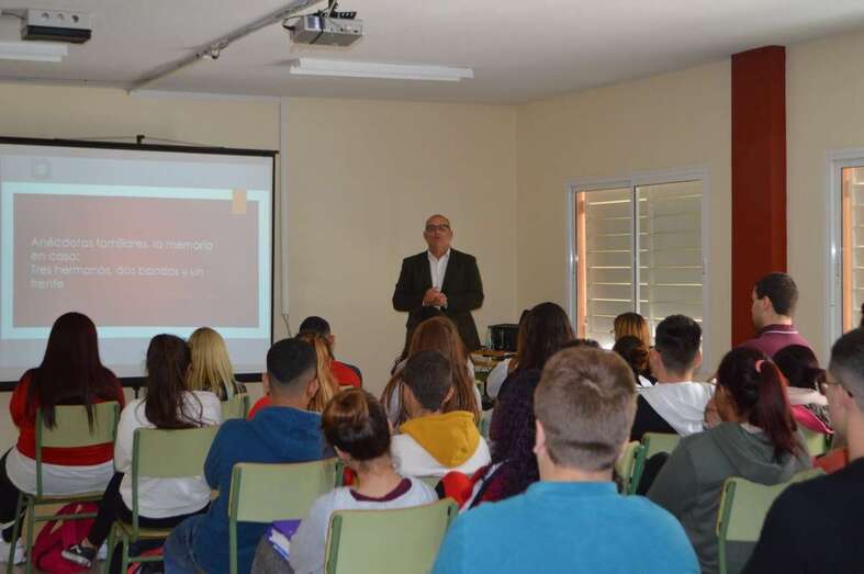 El edil y licenciado en Geografía e Historia, Agustín Arencibia, abrió este lunes las I Jornadas de Memoria Histórica del IES de La Herradura con una charla sobre anécdotas  de familiares suyos que lucharon en los dos bandos de la Guerra Civil.