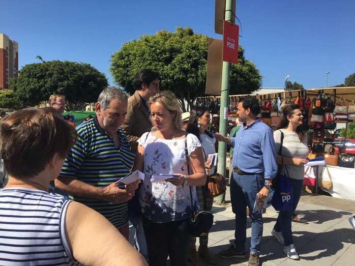 El mercadillo de Jinámar volvió a ser este domingo punto de cncurrencia de de políticos de diferentes partidos para hacer llegar sus mensajes electorales a los ciudadanos. Hoy coincidieron candidatos del PP y una carpa de Ciudadanos de Telde.