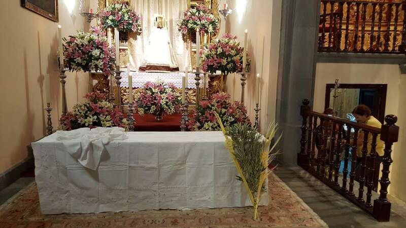 Vistoso ornato floral, obra de Segundo Amador, en el templo de Jinámar-casco con motivo de la Semana Santa (Foto Francisco Javier Santana) Vistoso ornato floral, obra de Segundo Amador, en el templo de Jinámar-casco con motivo de la Semana Santa (Foto Francisco Javier Santana)