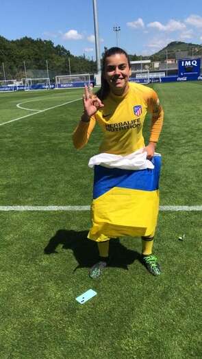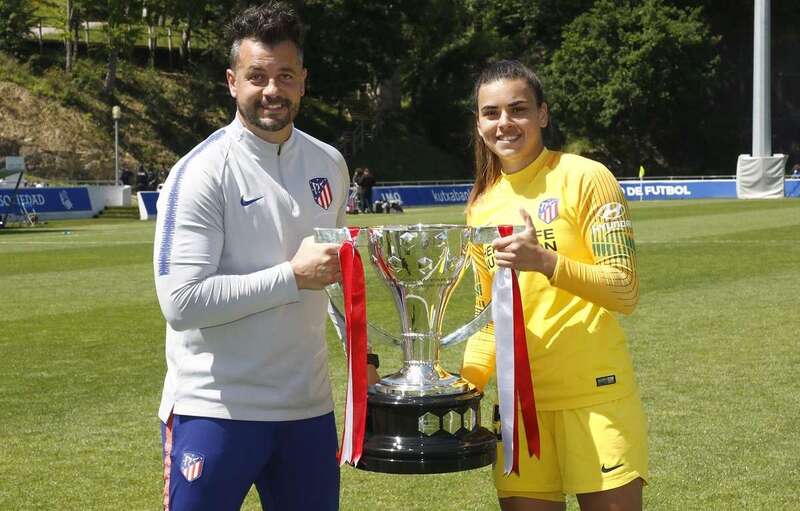 Misa Rodríguez, junto al trofeo de Liga (Foto TA) La guardameta teldense María Isabel (Misa) Rodríguez se proclamó este domingo campeona de La Liga Iberdrola con el Atlético de Madrid femenino después de derrotar 1-3 a la Real Sociedad.