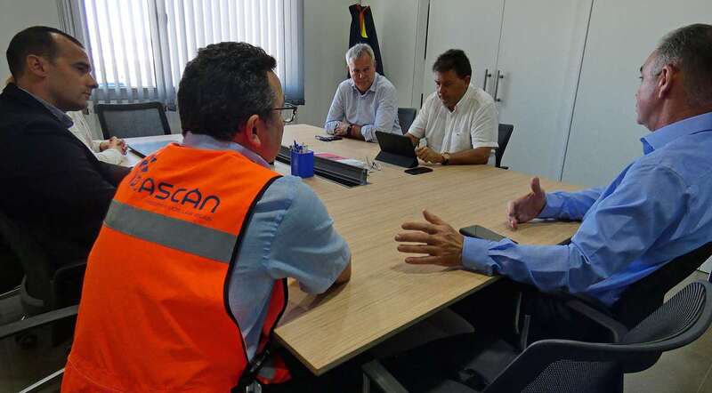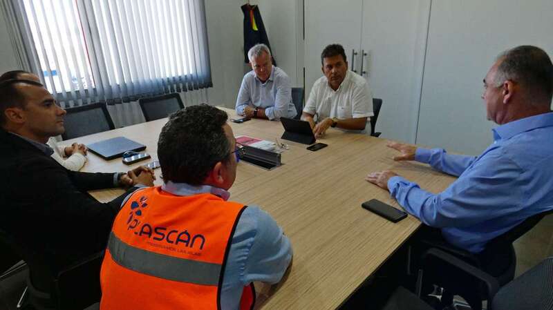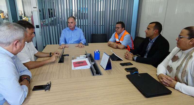 Los candidatos del PSOE al Cabildo grancanario, Luis Ibarra, y al Parlamento de Canarias por Gran Canaria, Sebastián Franquis, se reunieron esta mañana en Telde con representantes del Grupo Martínez Cano para conocer la situación del sector.