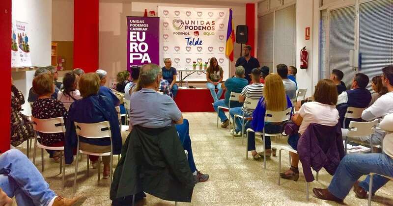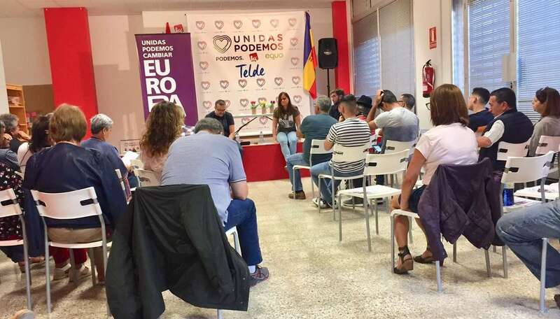 El eurodiputado y candidato de Podemos, Miguel Urbán, mantuvo este jueves un encuentro en Telde con militantes y simpatizantes de la coalición electoral Unidas Podemos, en el que participó también la candidata a la Alcaldía, Esther González.