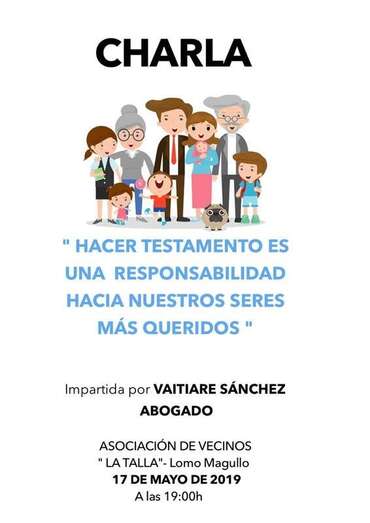 La sede social de Lomo Magullo fue escenario este viernes de una conferencia sobre la responsabilidad de dejar testamento, impartida por la abogada Vaitiare Sánchez y promovida por la AV La Talla que preside Miguel Florido.