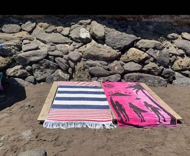 Dos usuarios usan tramos de la rampa de acceso a la arena para hacerse un solario individual (Foto TA)