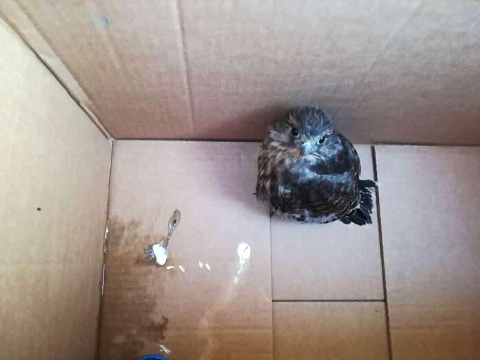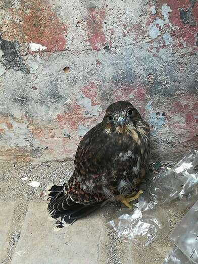 Vecinos y miembros del colectivo Creando Mundo por Jinámar rescataron un pequeño cernícalo que apareció estos días desorientado en el barrio. Lo metieron en una caja y lo entregaron a personal de Medio Ambiente.