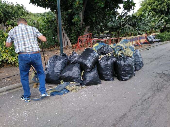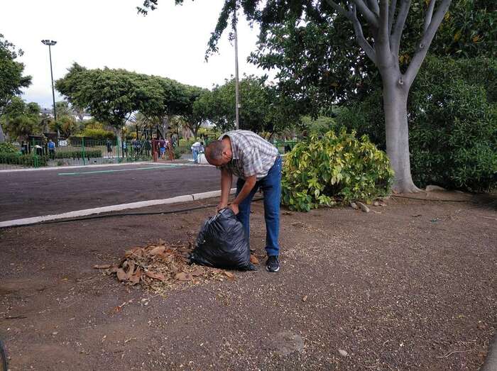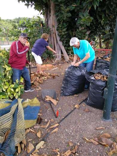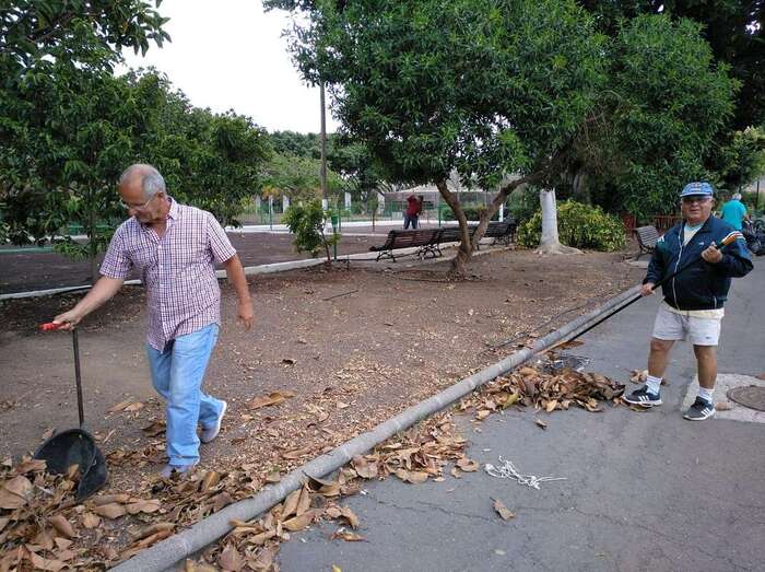 Ante la "desidia" de los jardineros que deben velar por el buen estado del parque urbano de San Juan, un grupo de vecinos ha tomado la iniciativa de limpiar las hojas caídas de un sector de este recinto verde, el mayor del municipio.