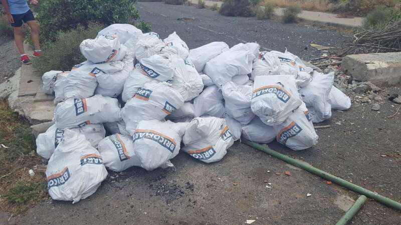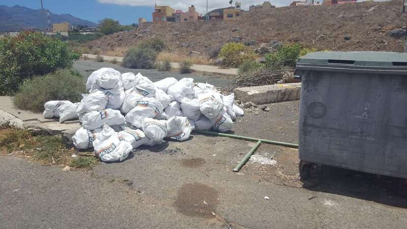 Un constructor, en un ejercicio de incivismo denunciable, ha tomado el barrio de Lomo Bristol como punto limpio para depositar en en bolsas los escombros de una obra en plena calle.