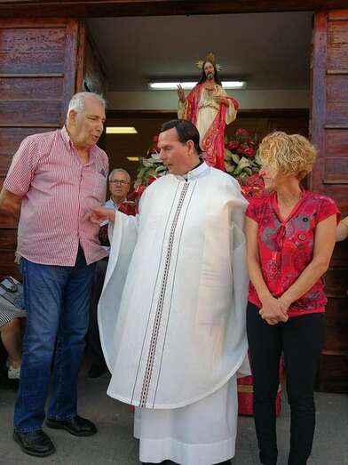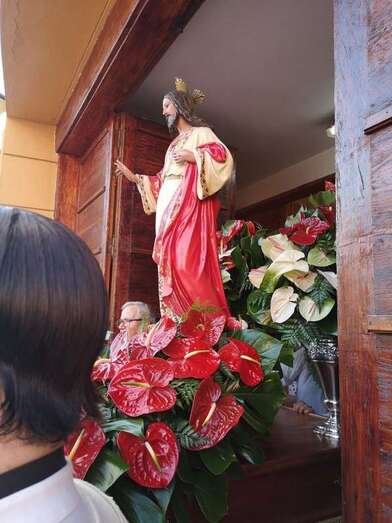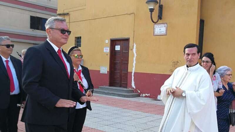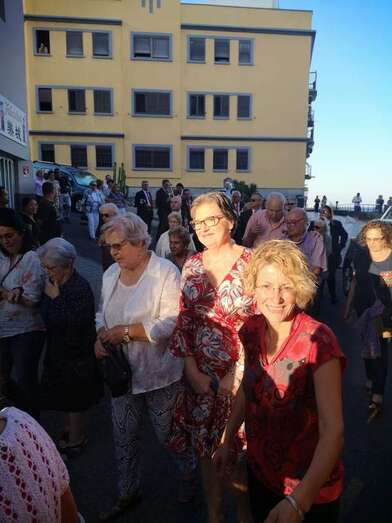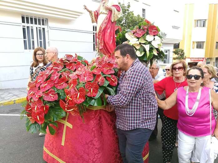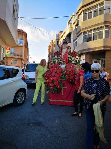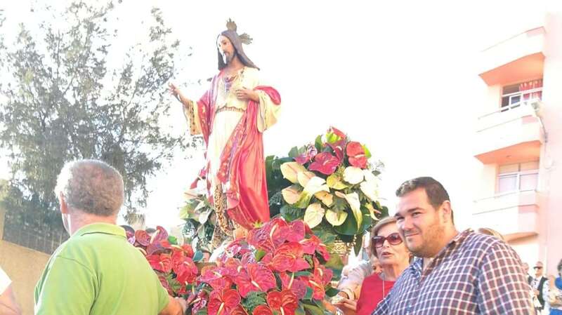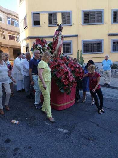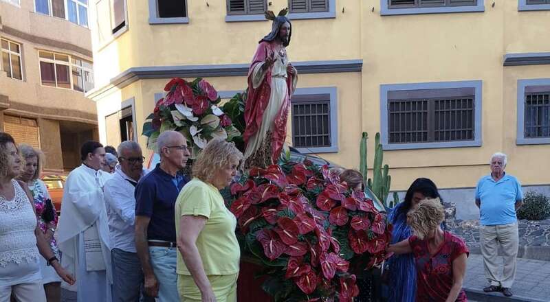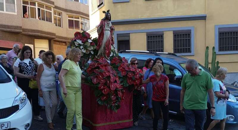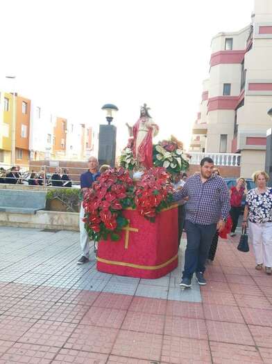 La imagen del Sagrado Corazón de Jesús procesionó este sábado por la tarde después de la misa por las calles del núcleo costero de La Garita, acompañada por un nutrido grupo de fieles y de la Banda de Música. Entre los asistentes, la nueva concejala Auri Saavedra.