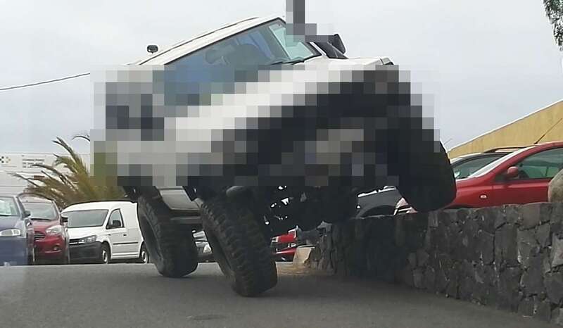 En Las Longueras hay quien no sale de su asombro después de que un 4x4 amaneciera el martes aparcado de una forma muy particular, con dos ruedas sobre un murete. Ocurrió junto al centro de salud, en una zona donde escasean los aparcamientos, y el conductor fue sancionado