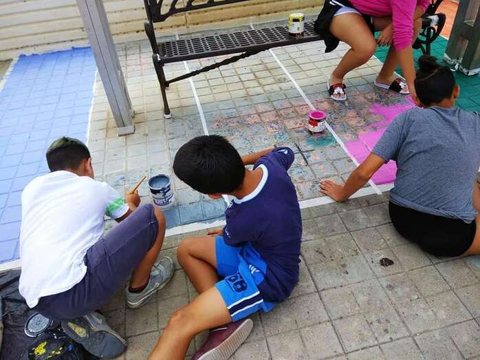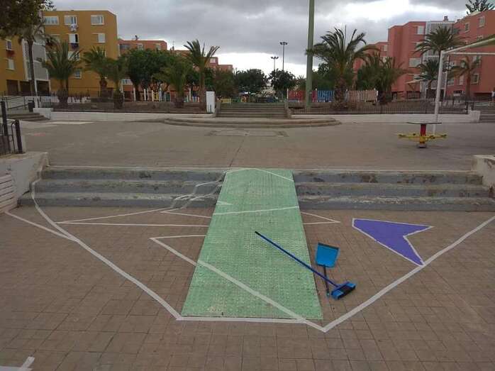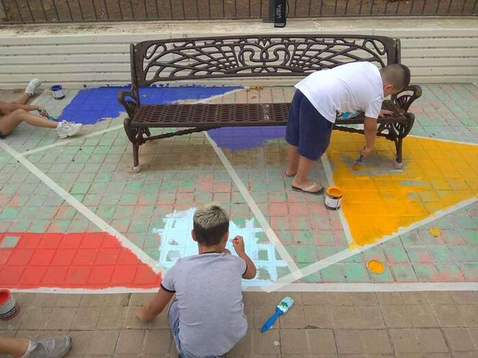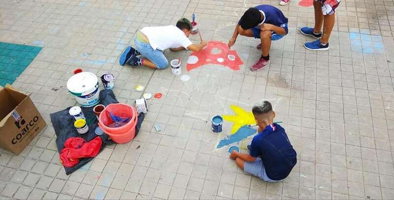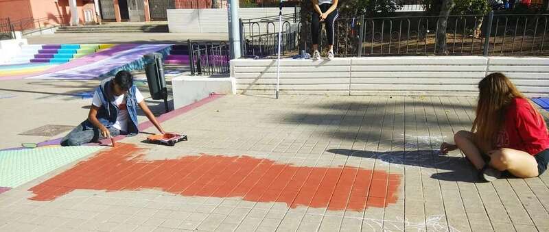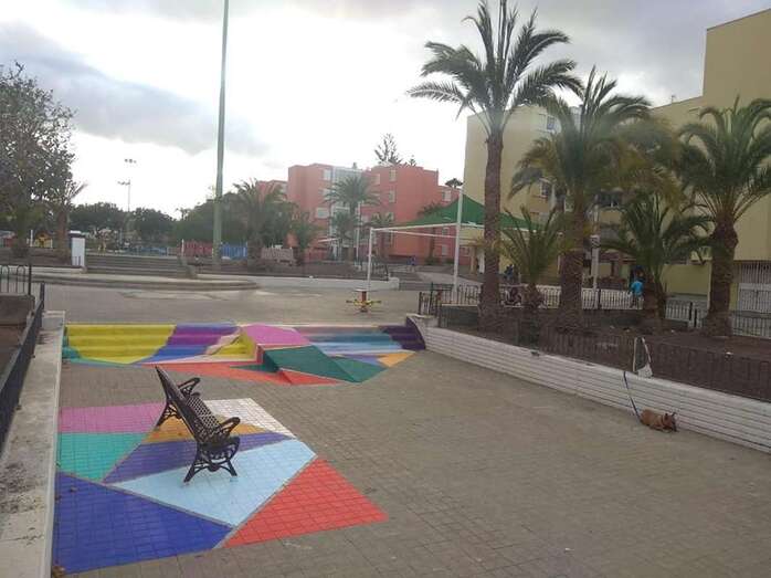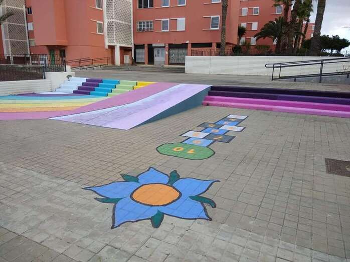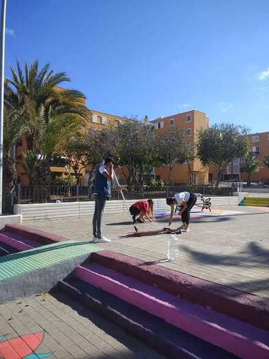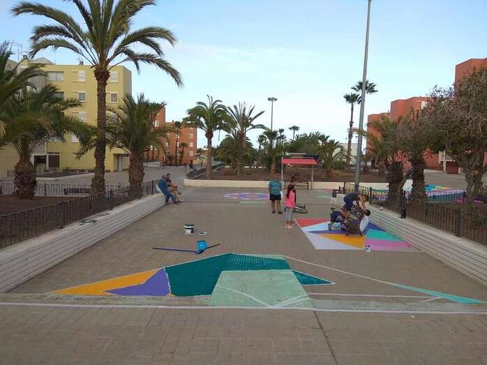 Niños y jóvenes han dado en los últimos días un toque multicolor al paseo y mobiliario del parque central de Las Remudas, en una iniciativa enmarcada en las actividades auspiciadas por el Proceso Comunitario de la zona para revitalizar este complejo de viviendas de promoción pública.