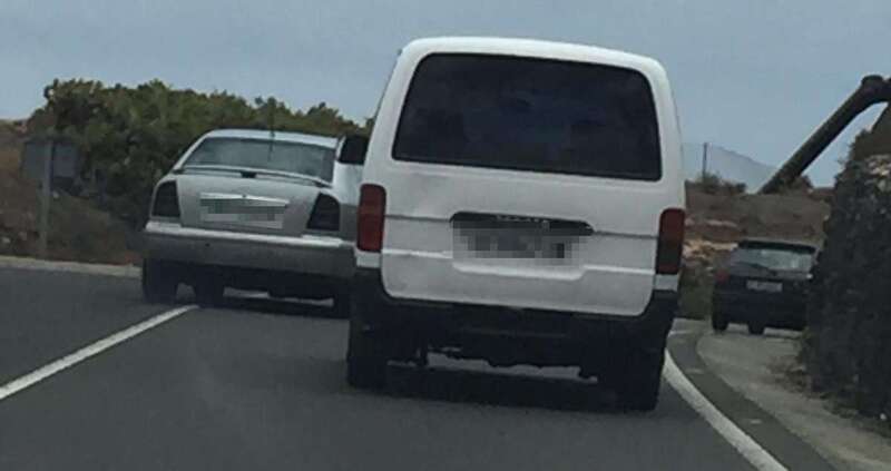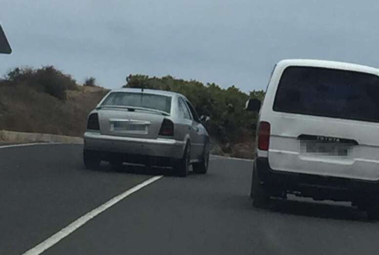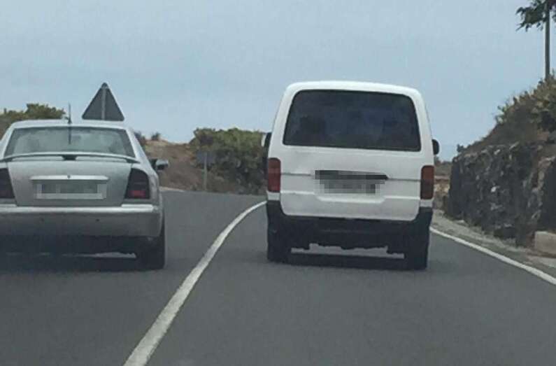 Un conductor fue cazado realizando un adelantamiento ilegal en la carretera de Jinámar (GC-100). Tal y como se aprecia en la imagen, para rebasar al vehículo que le precede llega a invadir el carril contrario en plena curva y un cambio de rasante de por medio.