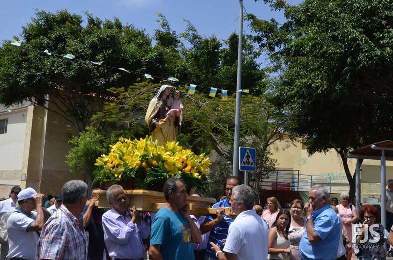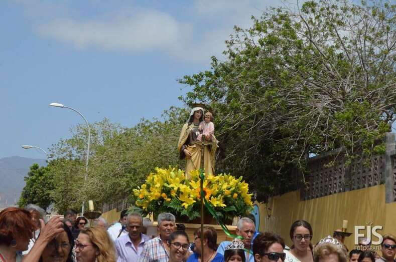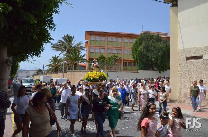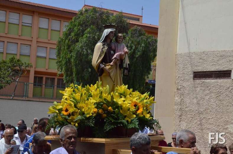 El barrio teldense de Las Huesas celebró este domingo la procesión de su patrona, las Virgen del Carmen. La imagen religiosa recorrió las principales calles del vecindario engalanada para la ocasión.