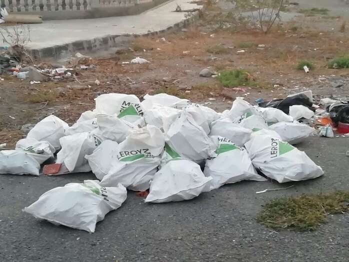 Los vecinos de la calle DE Salvia, en el barrio costero de La Garita, denuncian un vertido de sacos de escombros, basuras y otros desperdicios que han sido abandonados en esta vía.