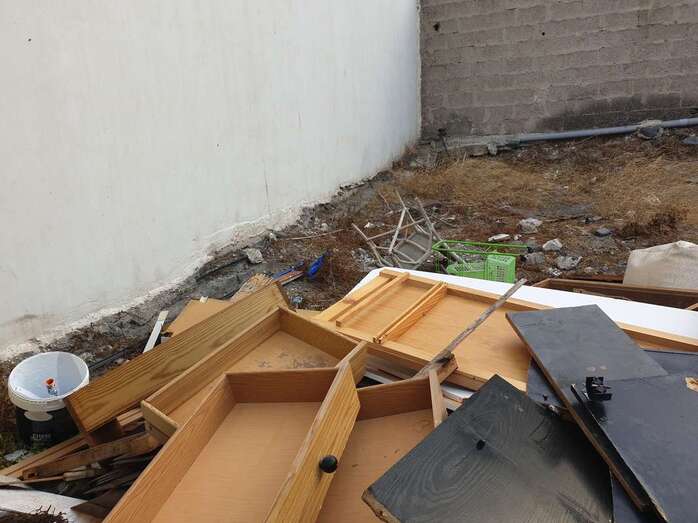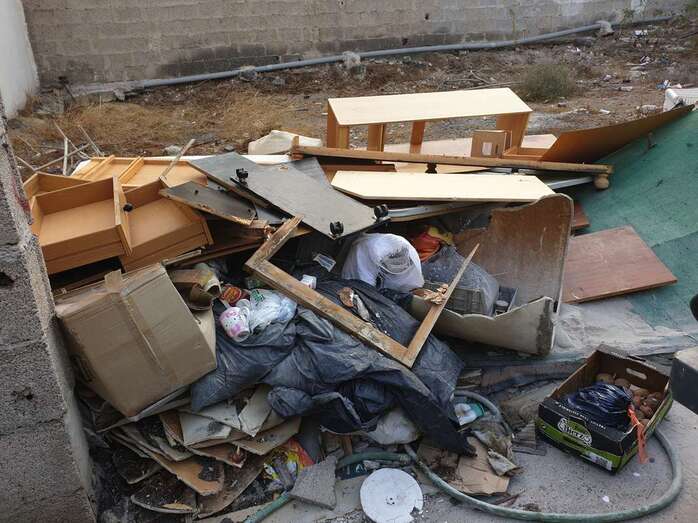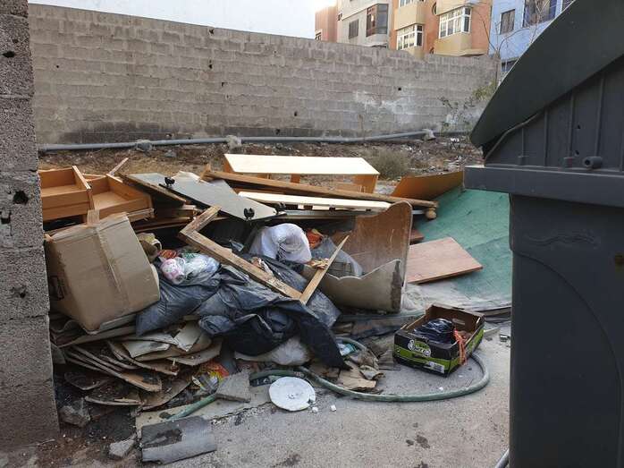 Los vecinos de la calle Numancia, una de las vías principales del barrio de Las Huesas, están hartos del "deplorable" estado que presenta un solar ubicado justo detrás de los contenedores de basura, en el que se acumulan enseres y muebles viejos y otros desperdicios.