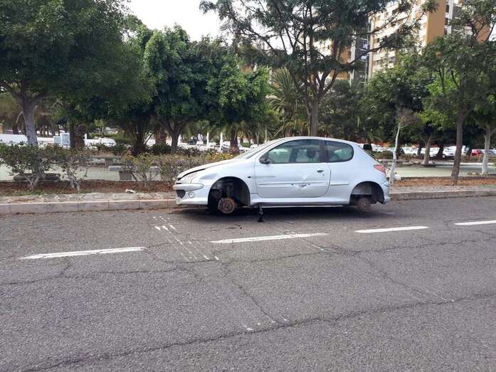 Imagen de uno de los vehículos abandonados en el entorno del Parque de las Mil Palmeras (Foto TA) Imagen de uno de los vehículos abandonados en el entorno del Parque de las Mil Palmeras (Foto TA)