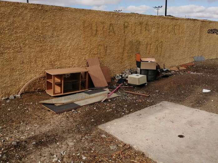 Imagen de trastos y enseres acumulados junto a unos contenedores en Jinámar (Foto TA)