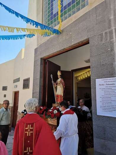 Casas Nuevas despidió este domingo sus fiestas patronales en honor de San Venancio con una misa oficiada al mediodía por Francisco Suárez, párroco de El Calero y El Ejido, y la posterior procesión religiosa, acompañada por la Banda Municipal de Música de Telde.