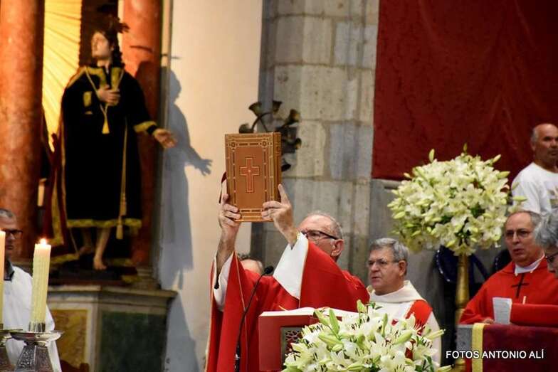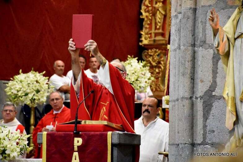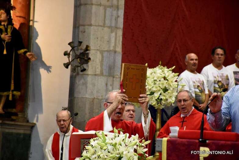 Con el fervor de siempre, cientos de feligreses arroparon esta noche, con la Basílica de San Juan a rebosar, el retorno de la venerada imagen del Cristo de Telde a su hornacina en el Altar Mayor, su morada habitual. TA avanza reportaje gráfico.