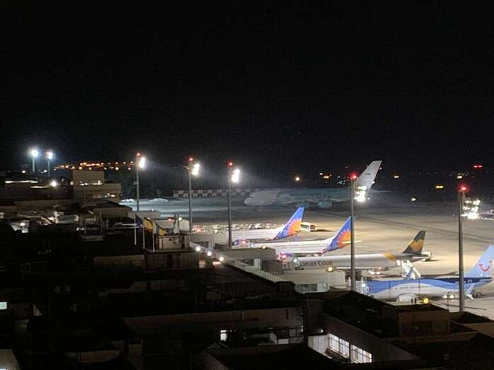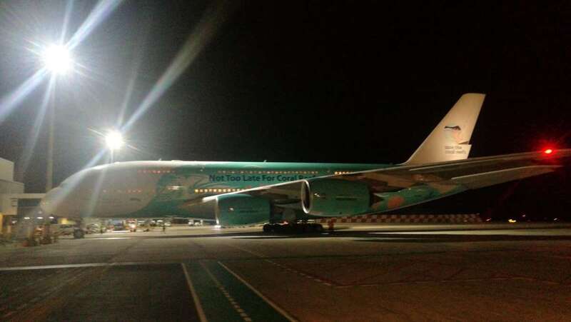 Un avión Airbus A380 llegó esta noche a Gando para repatriar a los turistas que se encuentran en la isla afectados por la quiebra de Thomas Cook. El modelo es uno de los más espectaculares de la marca y es la primera vez que opera en esta Isla.