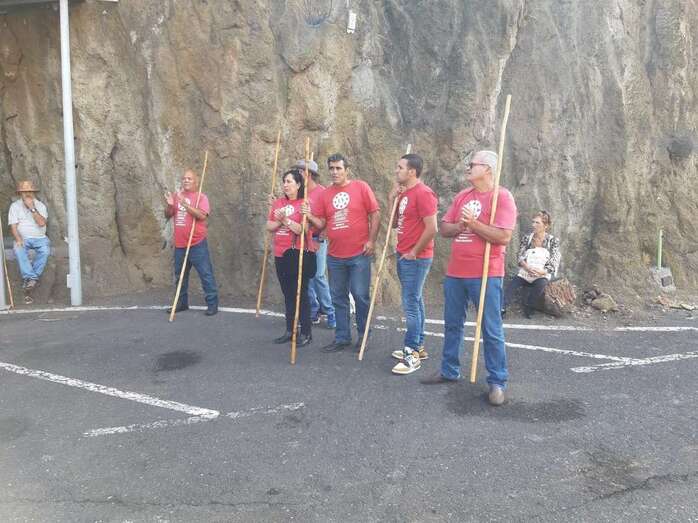 Miembros de la Escuela del Garrote Tradicional Canario Maestro Paquito Santana en el encuentro (Foto TA)