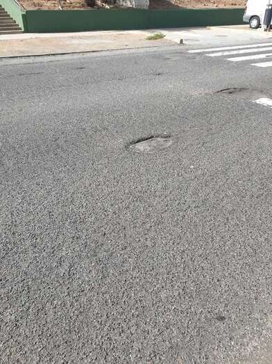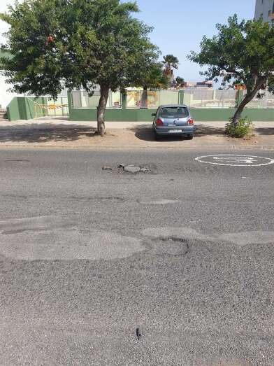 El estado del firme de la calle de Manuel Alemán Álamo no puede estar peor a la altura del Colegio Montiano Placeres. El asfalto está levantado en algunos puntos y en otros los baches son de varios centímetros de profundidad.