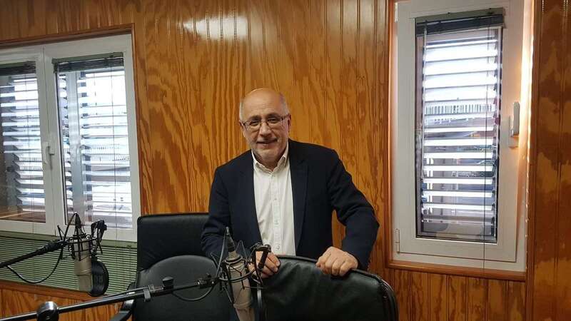 Antonio Morales en los estudios de Radio Faycán con el comunicador Ezequiel López (Foto TA)